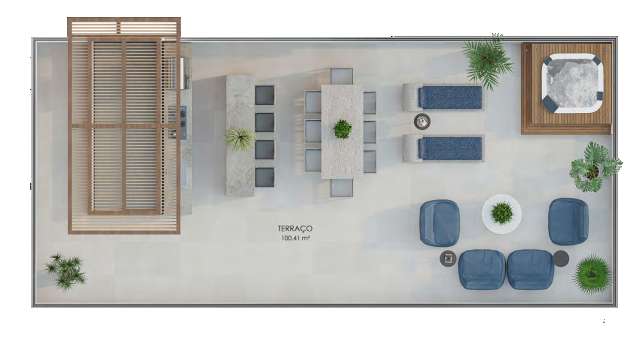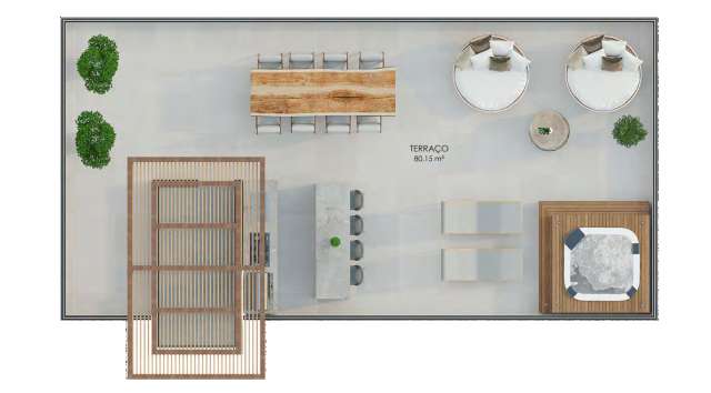 Opções de Lazer Privativo: Unidades com áreas de Garden (até 22,32 m²) ou Terraço nos pavimentos superiores (Duplex).