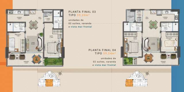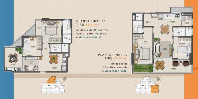 Os apartamentos contam com plantas inteligentes, de 48m² e 59m², ambientes bem distribuídos, integração entre living e varanda, excelente ventilação natural e acabamentos de alto padrão, oferecendo uma experiência de moradia prática e elegante, ideal para quem valoriza bem-estar e qualidade de vida.